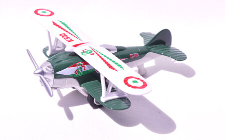 Kinder Spielflieger mit Rückzugmotor und Propeller, stabiles Modell, Material Kunststoff/ Metall, Masse Spannweite 16 cm, Länge 13,5 cm
